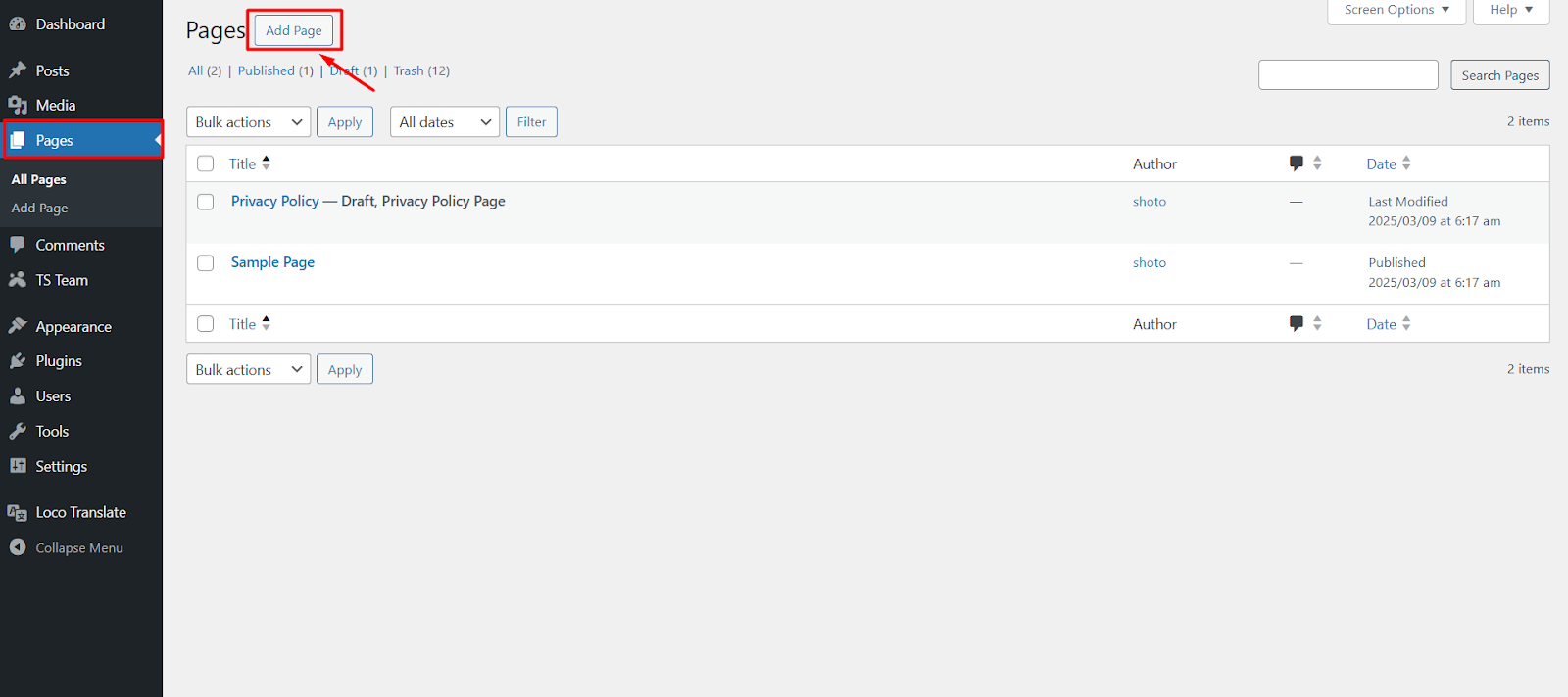 - From your WordPress dashboard, go to Pages > Add Page.